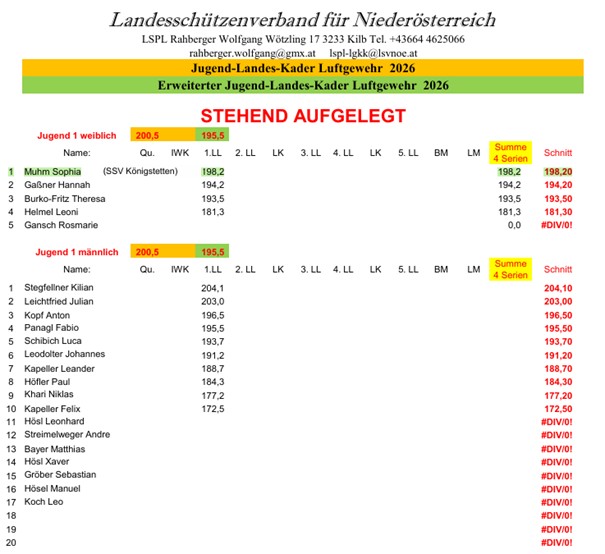 Ergebnisliste "Jugend-Landes-Kader" vom 11.10.2025